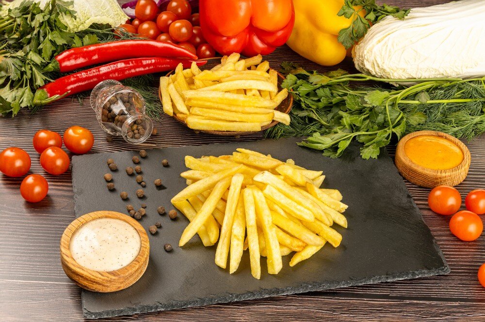 Наш секрет идеального картофеля — не в сырье, а в технологии. Мы используем качественный замороженный картофель, чтобы гарантировать стабильный вкус. Но главное — мы не держим его готовым. Каждую порцию мы готовим во фритюре строго после вашего заказа и сразу солим. Поэтому вы получаете его обжигающе горячим, с той самой хрустящей корочкой и нежной серединой, ради которых всё и затевалось.